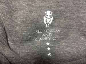 FCRBの春夏コレクションが発表されて、その中にこのTシャツがあった。僕がデビルパーカーで使った「KEEP CALM AND CARRY ON」がモチーフになっている。この「KEEP CALM~」はちょっと前からちょっとずつ流行ってきていて、ソニプラとかでマグカップやポスターなどが普通に売られている。僕がこのモチーフを気に入って使ったのは1年以上も前だから、僕の中では「今更?」と思わないこともないけど笑、やはりいいモチーフである。問題は、多分誰も意味を分かっていないって所である。