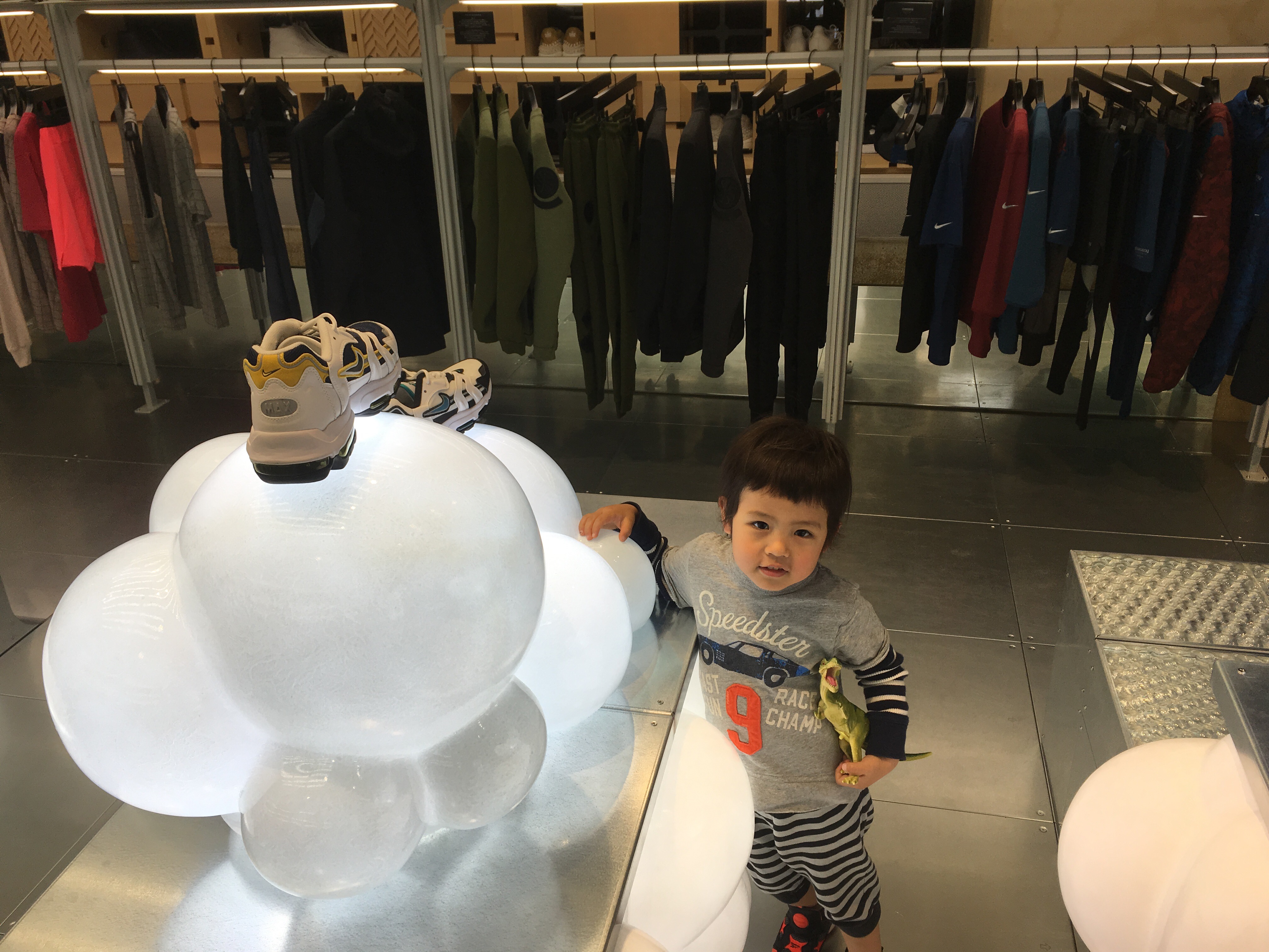 うちの先生が早めに覚えた言葉に「ナイキ」がある。前にもBEAMS店内で靴を脱いでいるな?と思ったら勝ってに靴を試着をしようとしていたり、NIKEの店の中でオレンジの箱を見て