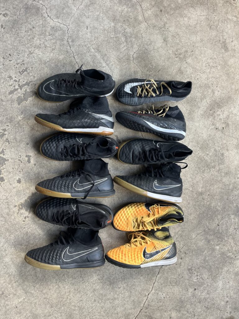 僕はTIEMPO以外は全部履いた。今もっているのは上の写真にあるものだけ。特にルナロン(NIKEのクッション技術)を採用したMAGISTAはかなり良いシューズで、初代、「2」と何足も履いた。今でも当時買い集めたものを大事に履いている。カラーリングも良かったなあ。赤、オレンジも良かった。