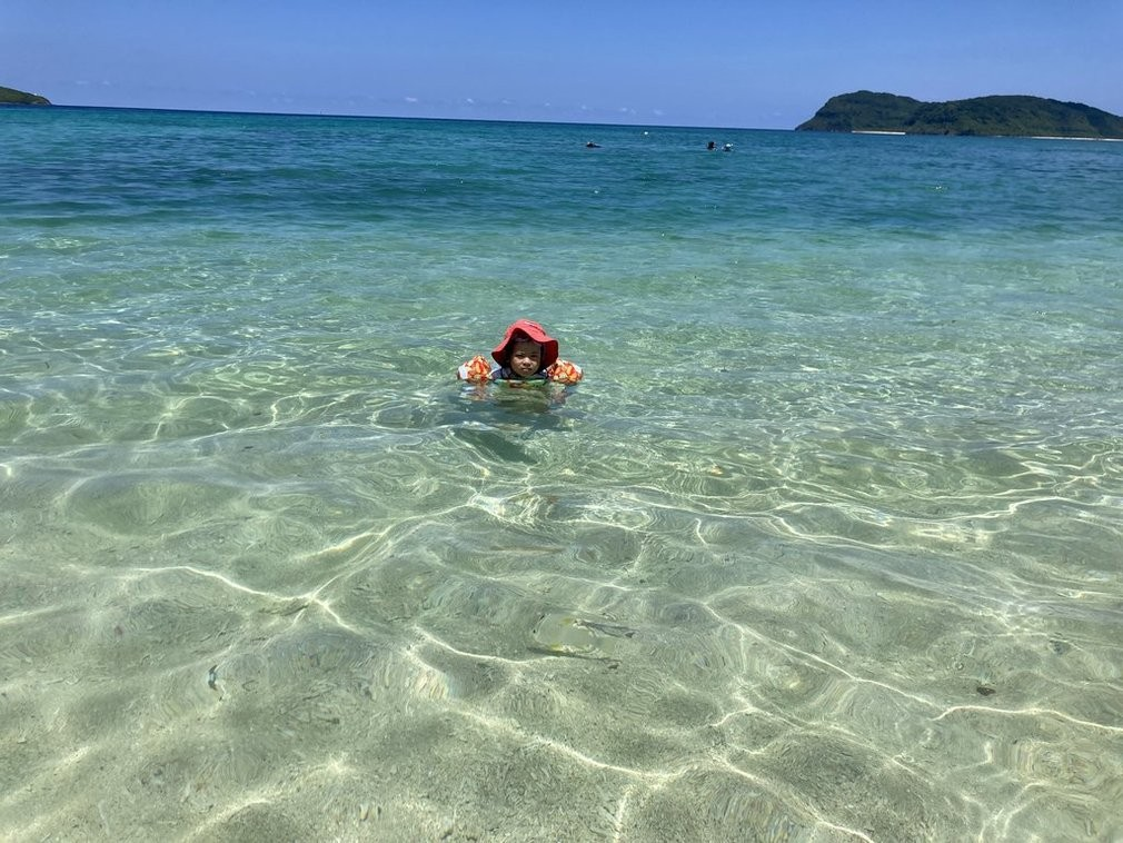 観光地を調べる時と、実際に行ったときに一番のギャップを感じるところは、人がたくさんいるところである。ガイドブックやカタログの写真には大勢の観光客は映らないんだよね。もちろん自分もその中の一人なんだけど、いざ人ごみを目の当たりにすると本当にがっかりするのである。今回の旅はこの点で恵まれ、参加したアクティビティツアーは我が家のみ、借りたバンガローから歩いて2分の浜は終始貸し切り状態。夕方ぐらいに裏の浜を散歩しながら気が向いたら服のままに海に入って、濡れたままバンガローに帰ってシャワーを浴びるなんて遊びも出来た。波もほとんどないものだから、下の子がこの浜をとても気に入り、しょっちゅう通った。離島だからなのか、この「人のなさ」が今回の旅の一番のポイントかな。自分たちと自然の音しかしない瞬間は不思議なものだったが、すぐに慣れてしまうのが面白い。