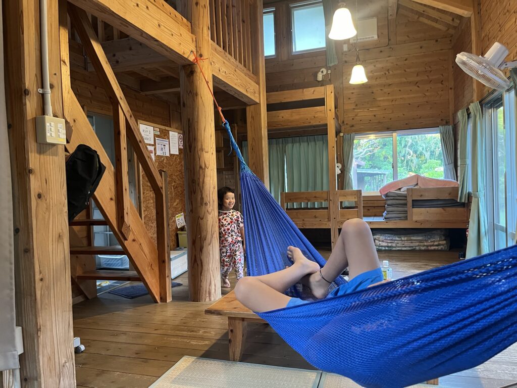 また車に戻り、バンガローを目指す。ナビでの所要時間は1時間ぐらいなのが、30数分で着いてしまう。そういうば西表島での制限速度は40キロで、ナビはそれを元に計算していたのだ。肝心のバンガローはウェブサイトで見るよりもずっと高クオリティ。2段ベッドがあったり、ロフトがあったりと、子供も喜んで一通り探検をしていた。