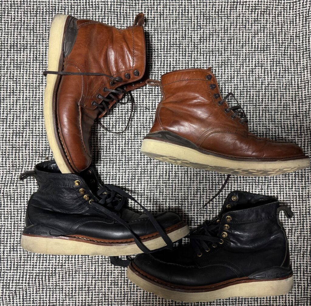 僕の中でのブーツの決定版である。今までDANNERを愛用していたのだが、このブーツに出会ってからはずっと履き続けている。たしか2011年以降、発売はされていないと思うので、最近のばかげた価格設定を考えると再販されても新しいものを買うことはないだろう。この二足をリペアしながら履いていこうと思う。
